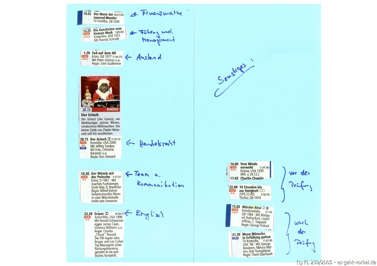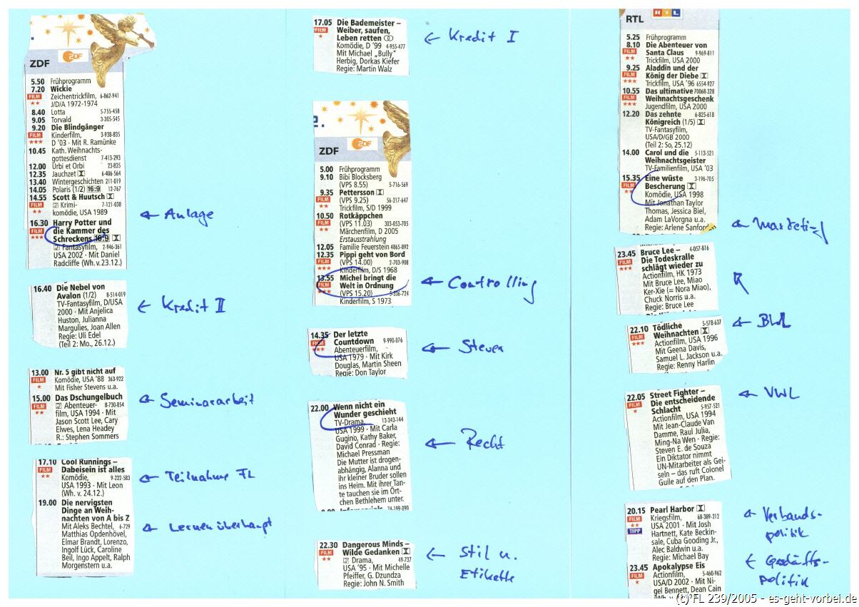 Doch es kam anders...!! Wie wir von Beginn des FLs an immer wieder zu hören bekamen und uns eingetrichtert wurde, stand die Weihnachtspause vor der Türe. Nein, Pause war das falsche Wort. Immer wieder hörten wir so nervende Sprüche wie "Denken Sie daran, in der Weihnachtspause erst mit Lernen zu beginnen ist viel zu spät!".