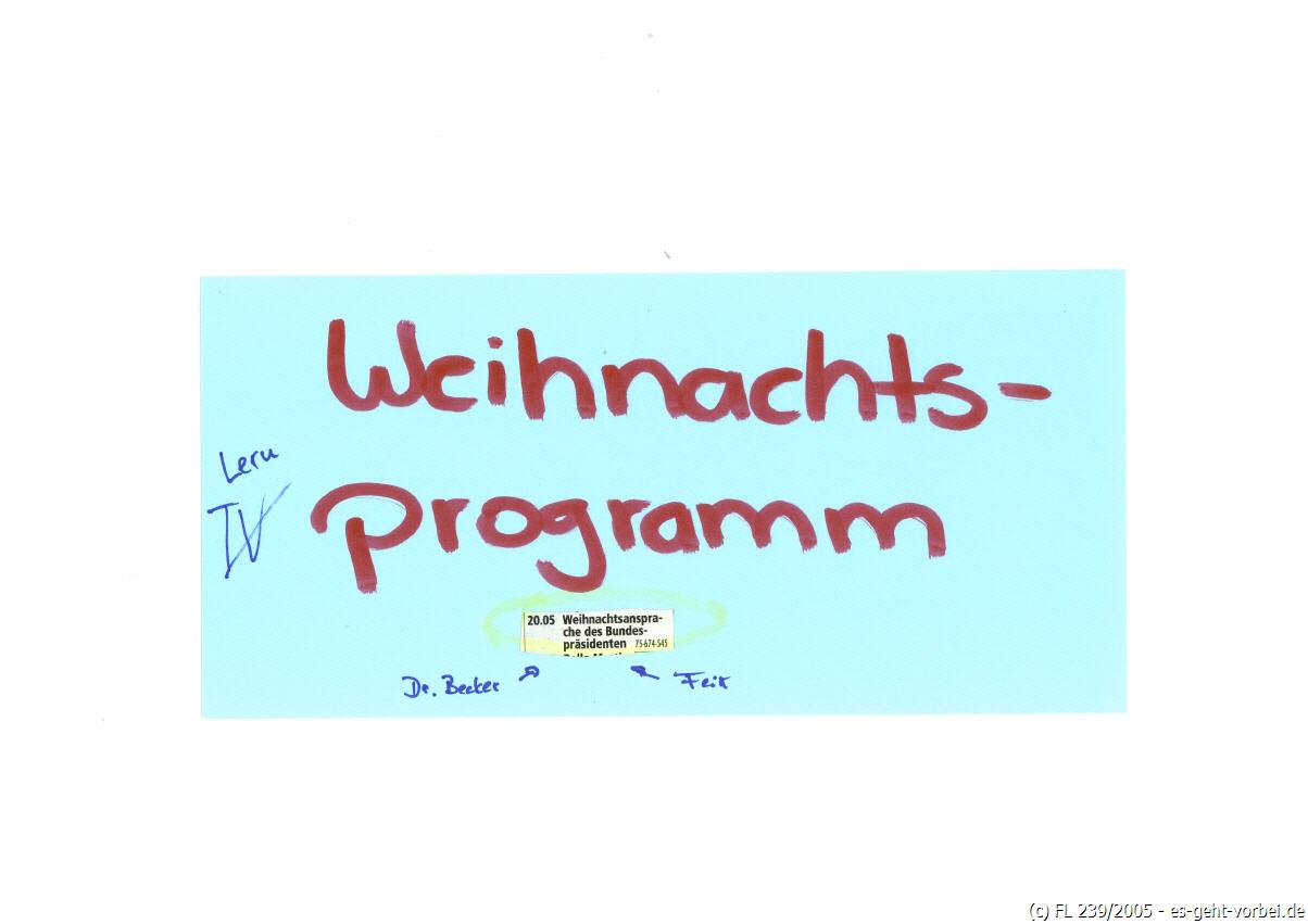 Im Grunde wußten wir schon vorher, dass es gut gehen würde. Hatten wir doch gemeinsam in mühevoller Arbeit und Abstimmung unser allgemeines Weihnachts-TV, pardon Weihnachts-Lern-Programm zusammen gestellt.